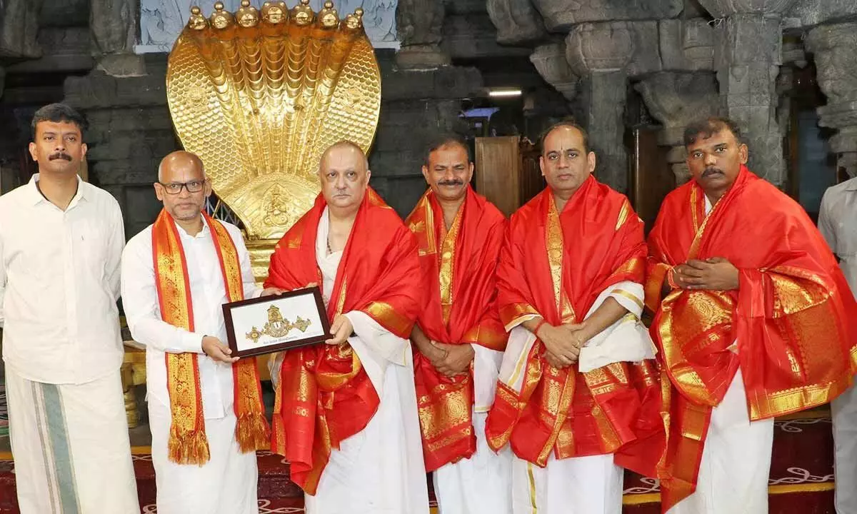 After the Lord’s darshan, TTD Addl EO Ch Venkaiah Chowdary presented Srivari Prasadam, Theertha Prasadams, and a laminated photo of the Lord to the DGP. The temple’s Vedic pundits blessed him with Vedic Hymns at Ranganayakula Mandapam.