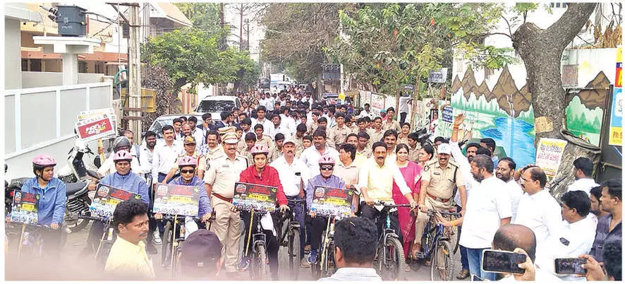 Vijayawada: The third day of the 510-km ‘Drugs Pai Dandayatra’ cycle rally, aimed at creating a drug-free society, was launched in a grand manner in the Patamata Police Station limits in Vijayawada of NTR district on Thursday.