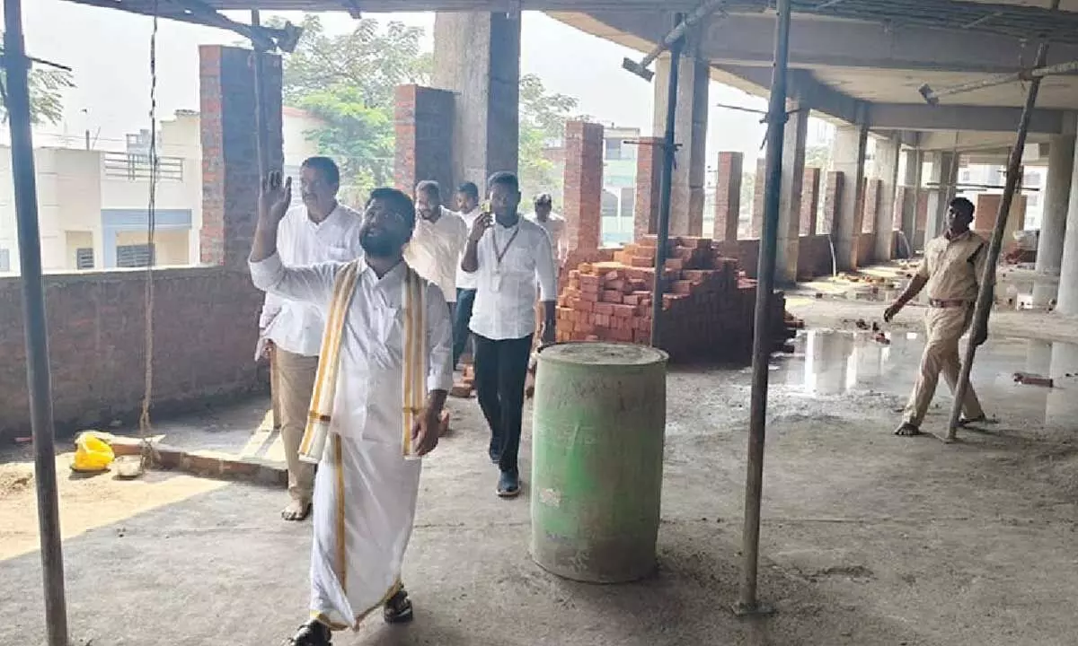 Vijayawada: Sri Durga Malleswara Swamy Varla Devasthanam Executive Officer and Special Grade Deputy Collector VK Seena Naik inspected the ongoing engineering and development works at the Kanaka Durga Temple atop Indrakeeladri here on Monday.