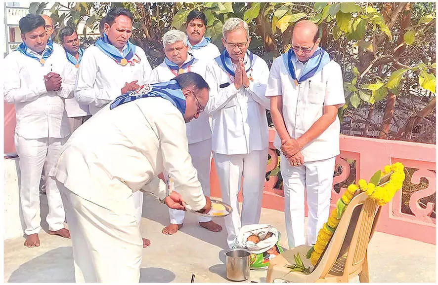 Vijayawada: The foundation stone laying ceremony for the construction of the State Office and Skill Development Centre of the Sri Sathya Sai Seva Organisations was performed on Sunday at the Mandir premises here. The new facility will come up on the second floor of the Mandir building and is envisioned as a centre dedicated to service and value-based skill development. Several distinguished members of the organisation, including State president R Lakshmana Rao, Kamala Triveni, National Seva Mahila Coordinator Shashibala, Vice-President Surendra, State Sevadal Coordinators Shyam Prasad and Shanthi, District President Sai Viswanadham, and Convenor NVL Narasimha Rao. State, District, and Samithi office bearers, along with Sevadal members, were also present. Following the foundation ceremony, a Sevadal training programme was conducted for Sevadal coordinators. The session focused on discipline, dedication, unity, and the true spirit of selfless service in accordancewith Swamy’s teachings.