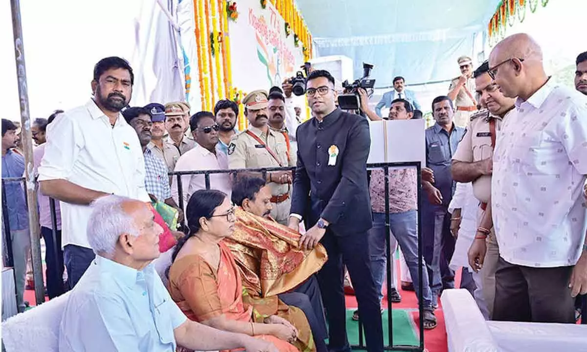 A significant part of the programme involved the felicitation of the family members of freedom fighters. In-charge Collector Megha Swaroop honoured the family of freedom fighter Neranti Chandramma, including Mari Ramatulasi, Nekkanti Adinarayana, Balarama Krishna, and Venkateswara Rao. Additionally, A Krishna Sharma, son of AB Nageswara Rao, and the grandsons of Krovvidi Lingaraju, namely Krovvidi Bhaskara Rao and Subrahmanyam, were felicitated. The collector also felicitated Kandula Babu Rayudu, the grandson of Kandula Veera Raghava Swamy.