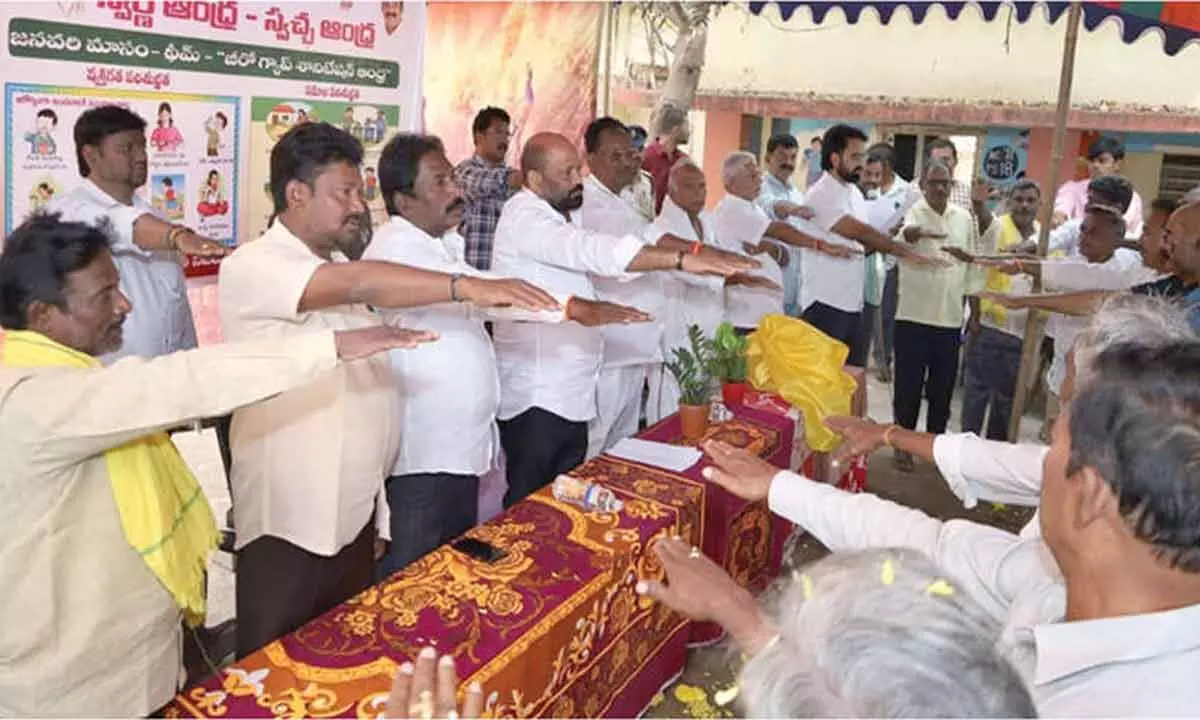 During the event, the MLA administered the Swachh Andhra pledge and urged people to dedicate some time every day to maintaining cleanliness in their surroundings. He also appealed to the public to completely prevent open defecation and work collectively towards a clean and healthy environment.
