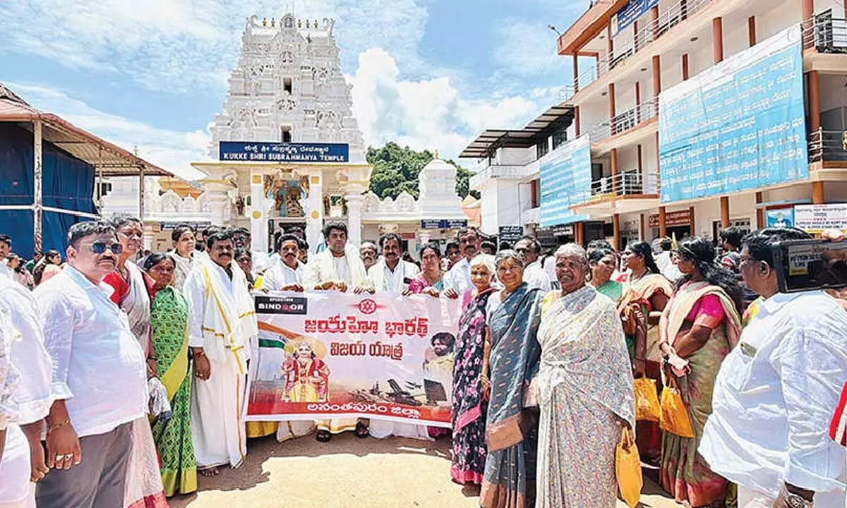 Kukke Shri Subrahmanya Temple: Janasena Party, under the leadership of district president and Ahud Chairman T.C. Varun, conducted special prayers at the Kukke Subrahmanya temple, in line with the instructions of Party Chief and AP State Deputy Chief Minister Pawan Kalyan. The event aimed to seek divine blessings for the Indian Army and Prime Minister Narendra Modi, with a particular focus on the nation’s pride through Operation Sindoor.