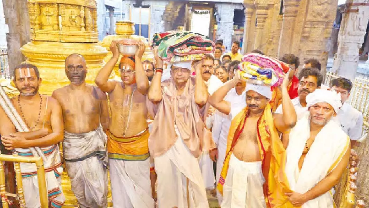 Tirumala: On the eve of Anivara Asthanam (start of new accounting year at TTD), the sacred Koil Alwar Tirumanjanam cleansing ritual was performed with religious fervour at Tirumala Sri Venkateswara temple on Tuesday.