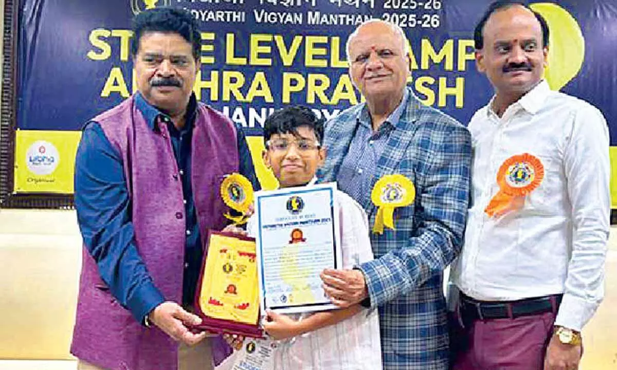 Tirupati: Lakshith Srinivas, a student of Class VI at the Kendriya Vidyalaya, IIT Tirupati has secured Second Position at the State level prestigious Vidyarthi Vigyan Manthan (VVM) – 2025. With this remarkable performance, he has also been selected for the National Level of the competition.