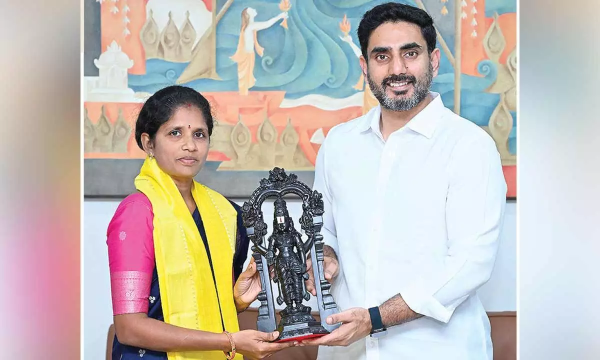 During his meeting with the “Shining Teacher,” minister Nara Lokesh adopted the role of a student, respectfully seeking advice and suggestions from Kalyani Kumari on measures to strengthen government schools. He assured her that these recommendations would be implemented.