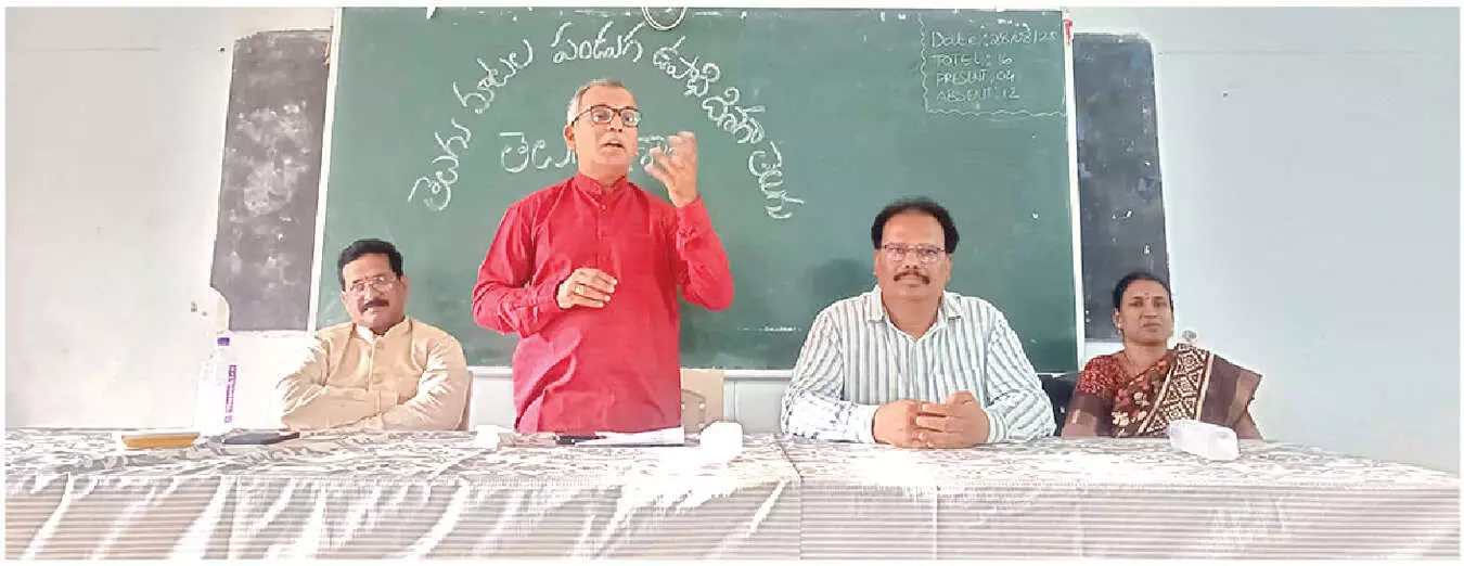 Rajamahendravaram: Telugu lyricist and English lecturer Dr Noojilla Srinivas took part as the chief guest at a seminar on ‘Telugu Towards Employment’ held at SKVT Government College on Thursday as part of the Telugu Maatalu Panduga (Telugu Words Festival), organised by Telugu Saraswatha Parishad and Kala Gowtami organisations.