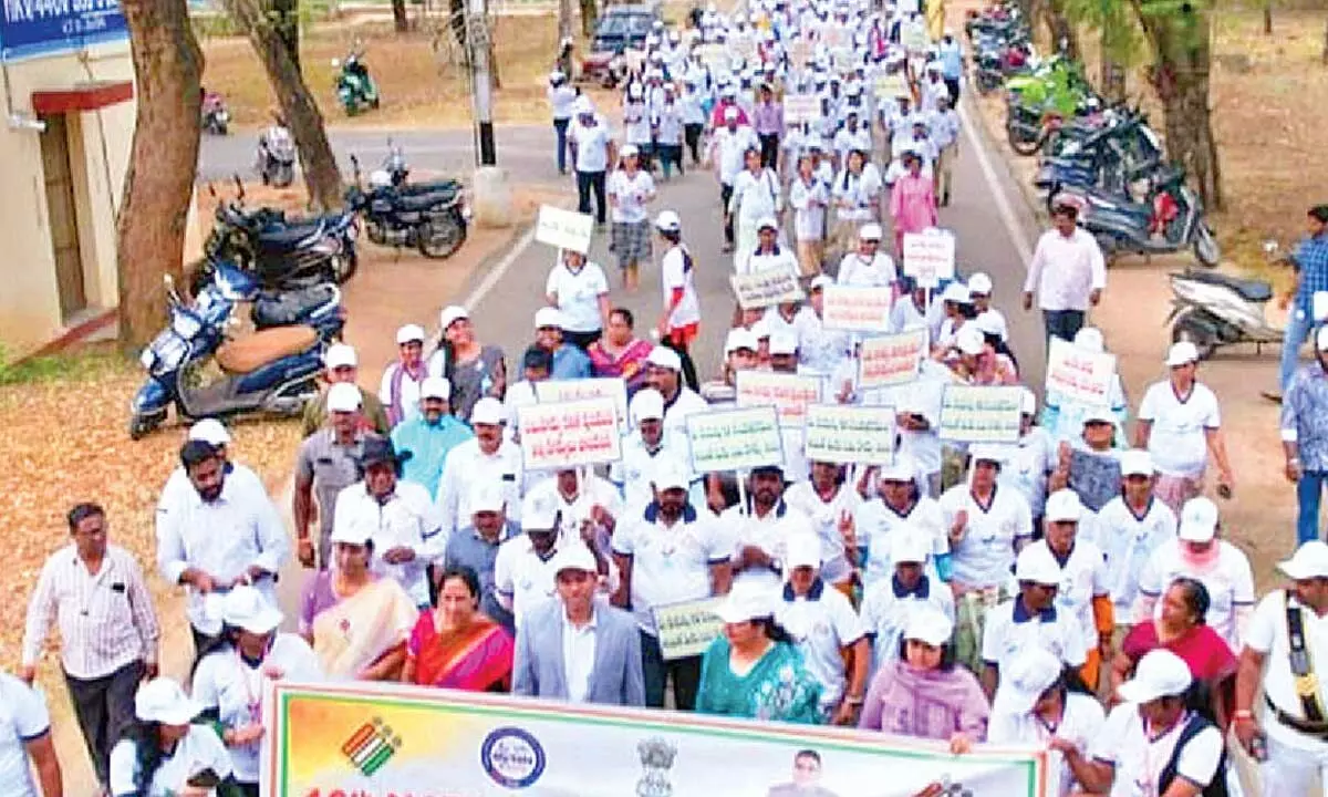 Tirupati: District Collector Dr S Venkateswar has called upon all eligible citizens to understand the importance of their vote and make sure they exercise their voting right. The 16th National Voters’ Day was observed on Sunday at Sri Padmavati Mahila Visvavidyalayam (SPMVV). The programme was attended by the District Collector, Municipal Commissioner N Mourya, SPMVV Vice Chancellor Prof V Uma, AEROs, BLOs, and election operators. An election pledge was administered to the participants, and a voter awareness rally was also held.