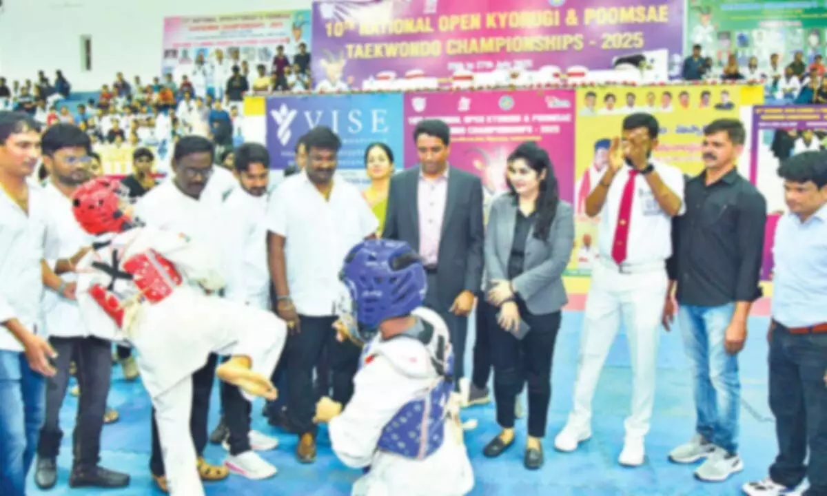 Vijayawada: The10th National Open Taekwondo Championship – 2025 kicked off on Friday at the Chennupati Ramakotaiah Indoor Stadium here with NTR District Collector Dr G Lakshmisha attending as a special guest. Dr Lakshmisha encouraged the athletes and extended his best wishes for them to showcase their talent and win medals.