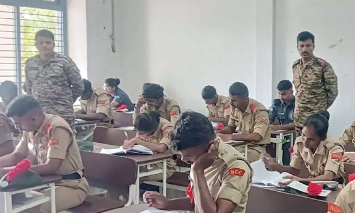 Senior Division and Senior Wing cadets appeared for the exam, which assessed their knowledge in leadership, drill, weapon training, map reading, field craft, and national integration.