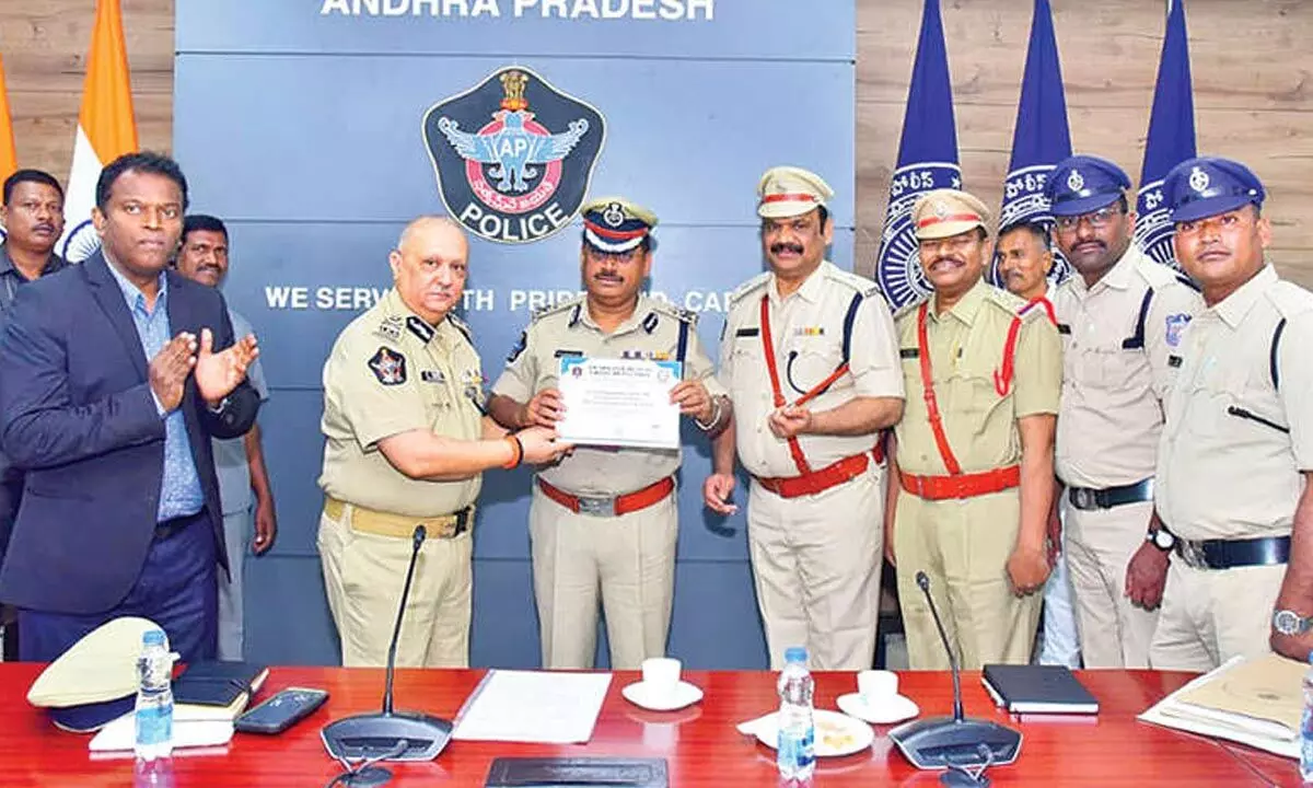 The award was received from the DGP by City Police Commissioner SV Raja Sekhar Babu, along with Crime DCP K Tirumaleswara Reddy, ADCP M Rajarao, Inspector M Ram Kumar, and members of crime staff.
