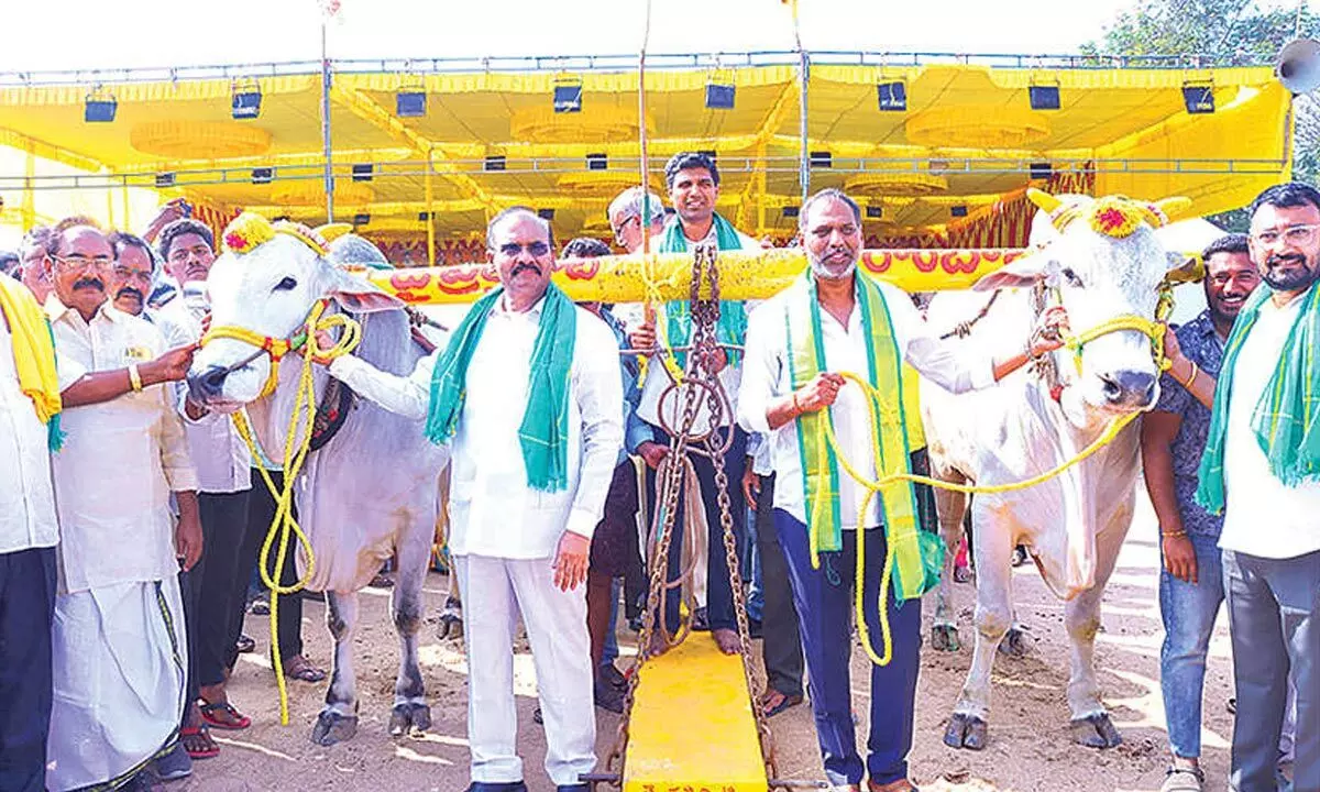 National-level Ongole breed bullock cart pulling competitions were inaugurated by the minister along with Narasaraopet MP Srikrishna Devarayalu and MLA Prattipati Pulla Rao at Golconda Gardens in Chilakaluripet on Sunday.