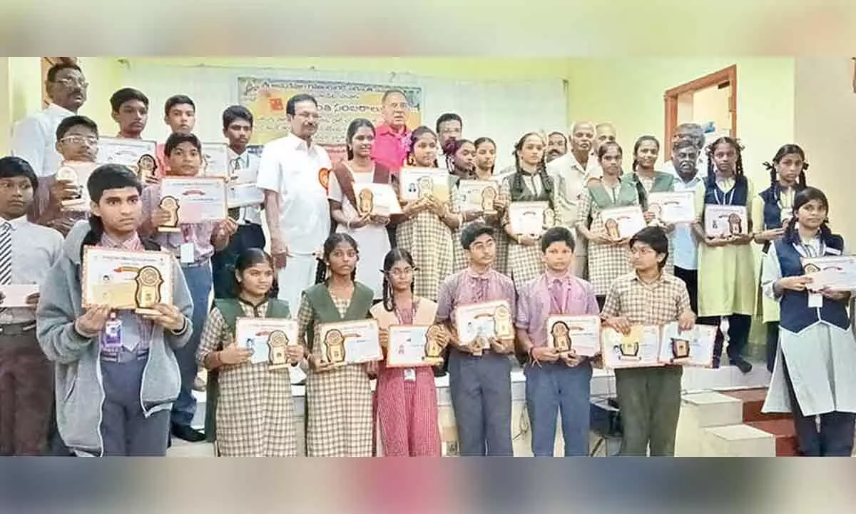 Nellore: Annadevula Govinda Reddy Saraswati Samajam presented prizes to the winners of essay writing competition held for students on the significance of Sankranthi festival. Dr Gangishetty Sivakumar, recipient of Central Sahitya Akademi Bal Sahitya Puraskar Children's Literature Award, gave away the prizes.