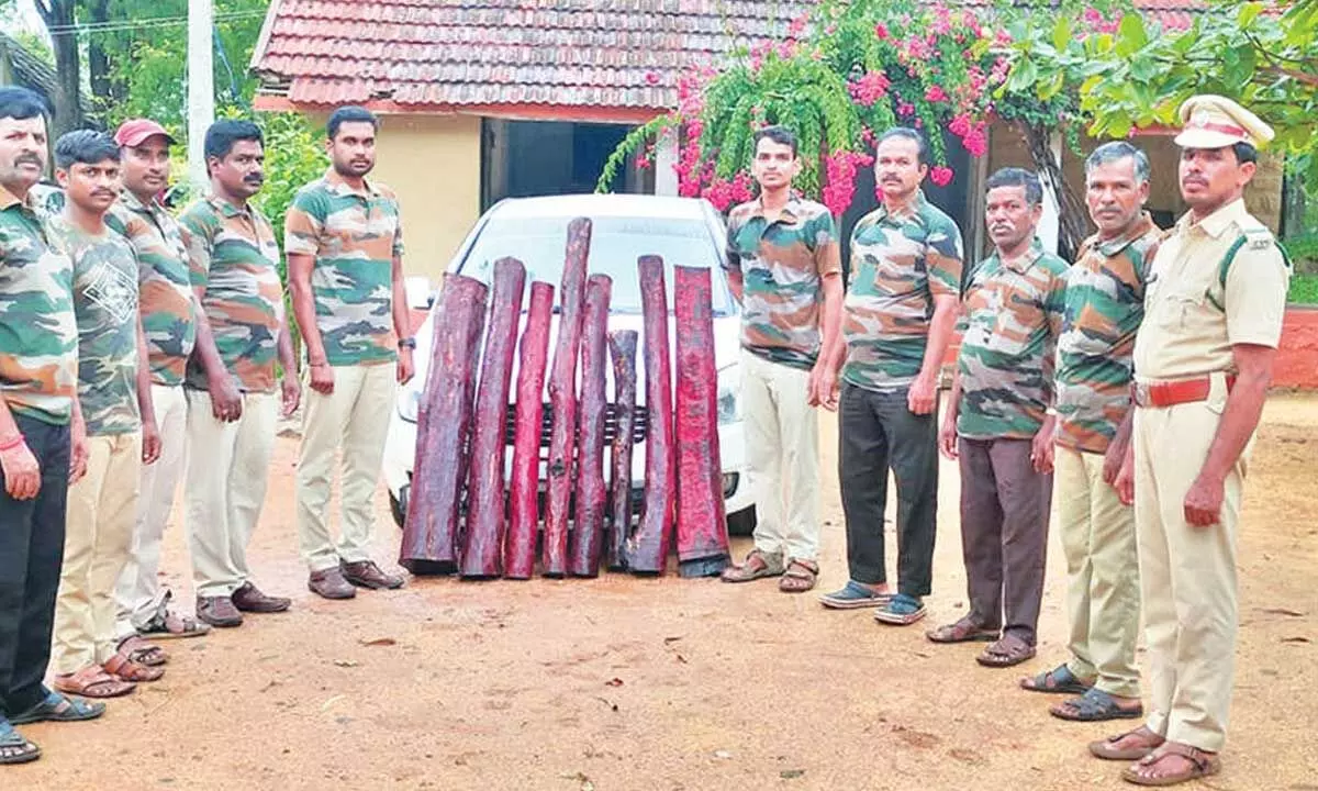 Based on reliable intelligence, the team intercepted a suspicious car and two-wheeler suspected of transporting the logs to Tamil Nadu. The smugglers abandoned the vehicles near a roadside temple and fled under cover of darkness. A search is underway to apprehend the absconding individuals.