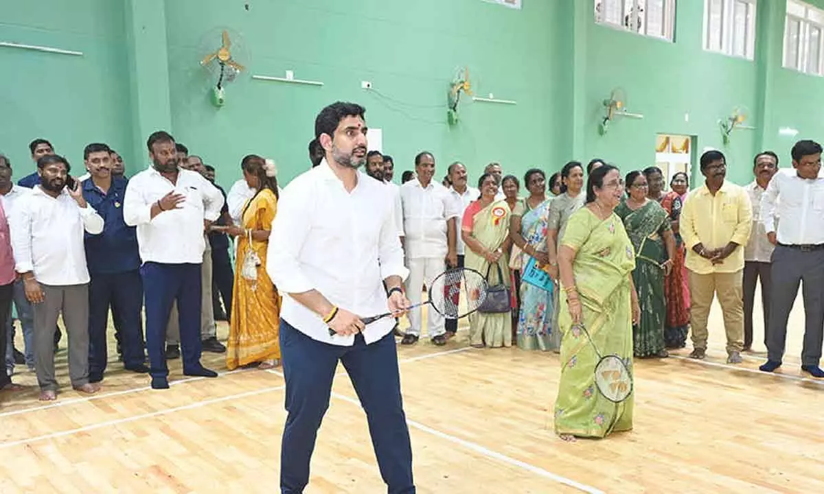 Tirupati : Minister for Education, IT, and Electronics Nara Lokesh emphasised the State government’s commitment to sports infrastructure development while inaugurating Khelo India Multipurpose Indoor Hall at Sri Padmavati Mahila Visvavidyalayam (SPMVV) in Tirupati on Wednesday. Built at a cost of Rs 7.5 crore with contributions from the Central government, the university, and the Sports Authority of Andhra Pradesh (SAAP), the stadium aims to provide a conducive environment for sports.