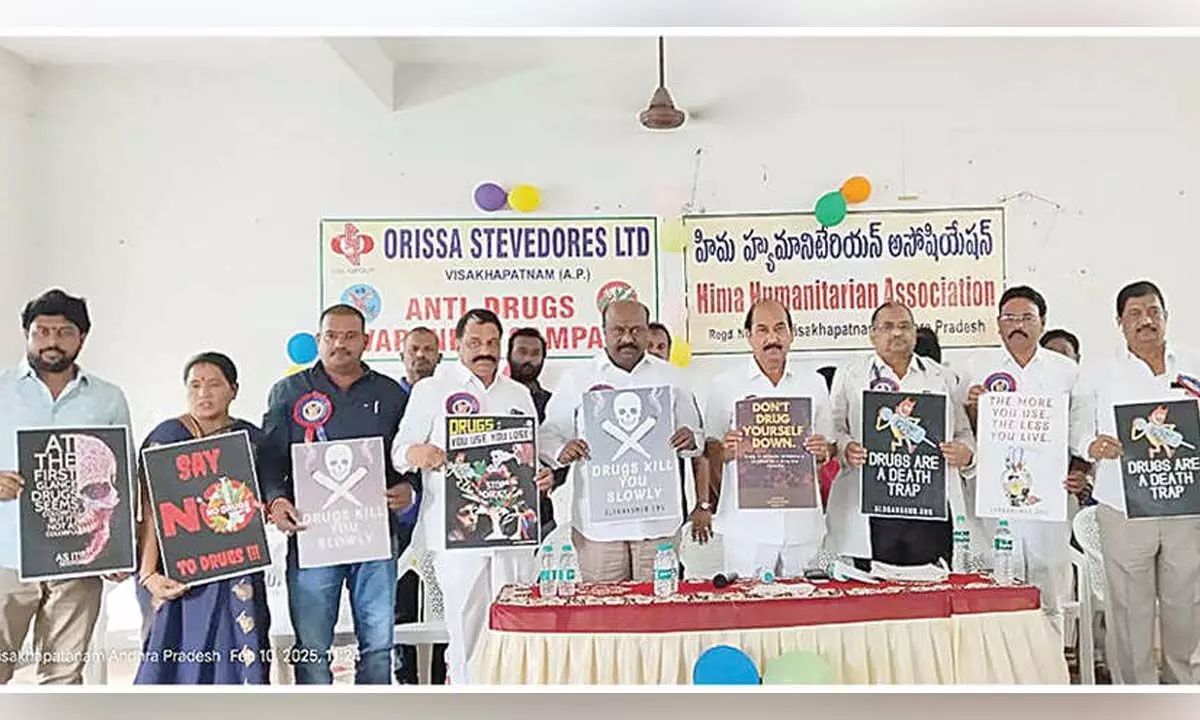 Among others, Sunkari Rahul Alwar Das, Narava Rambabu, B Srinivas, displayed posters to discourage youth from fallingprey to drugs and its ill effects.