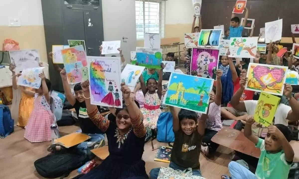 Vijayawada: City-based Sphurthi Creative Art School organised an art and craft contest for children on the occasion of World Mother’s Day on the premises of Shikhara School here on Sunday with the primary objective of bringing out the inherent creative potential in children and making them understand the sanctity of the word ‘mother’.