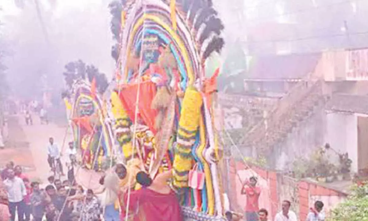 Rajamahendravaram: Sankranti Prabhala Utsavam was held in a grand manner across Konaseema district, drawing large crowds from various parts of Godavari region. Thousands of devotees gathered at Jaggannathota to witness the Prabhala festival, which has a history spanning 476 years.