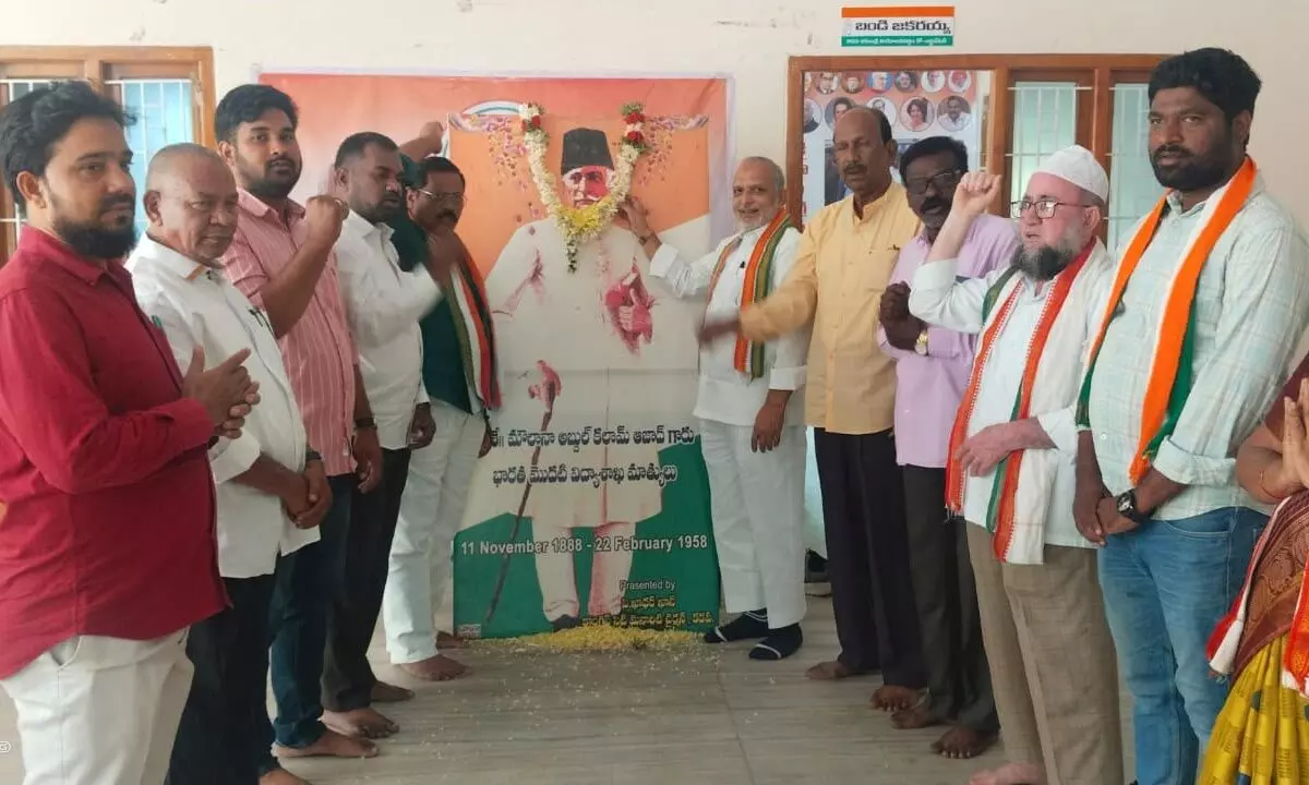 Kadapa: Congress City President Afzal Khan commemorated the 67th death anniversary of India's first Education Minister, Maulana Abul Kalam Azad, by paying tribute at the Congress Party District Office in Kadapa City. Khan garlanded Azad's portrait and highlighted the significant impact of Azad's contributions to education in India.