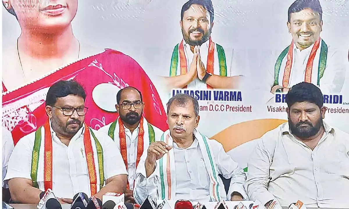 Senior Congress leader and APCC chief spokesman N Tulasi Reddy speaking to the media in Visakhapatnam on Wednesday