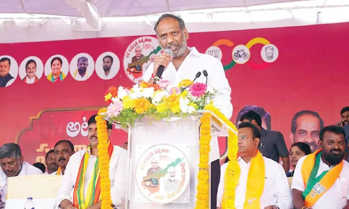 Energy minister Gottipati Ravi Kumar speaking at Atal Sandesh–Modi Suparipalana Yatra in Bapatla on Tuesday
