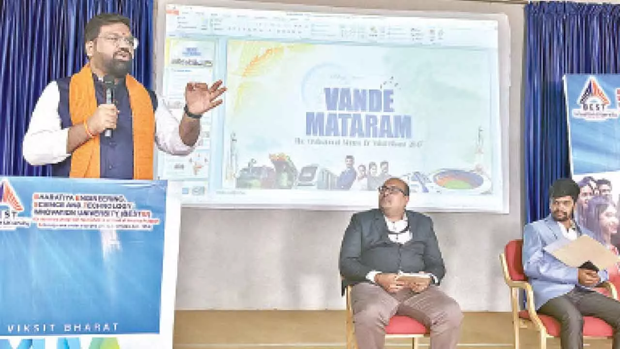 Gorantla: The Viksit Bharat Yuva Connect, the flagship initiative of MYBharat under the Ministry of Youth Affairs and Sports, was held at BEST Innovation University on Friday, drawing enthusiastic participation from around 300 youth. The programme was organised on the theme “Vandemataram@150 – A Civilizational Mantra for Viksit Bharat@2047,” reflecting the vision of building a developed, self-reliant and strong nation by the centenary of Independence.
