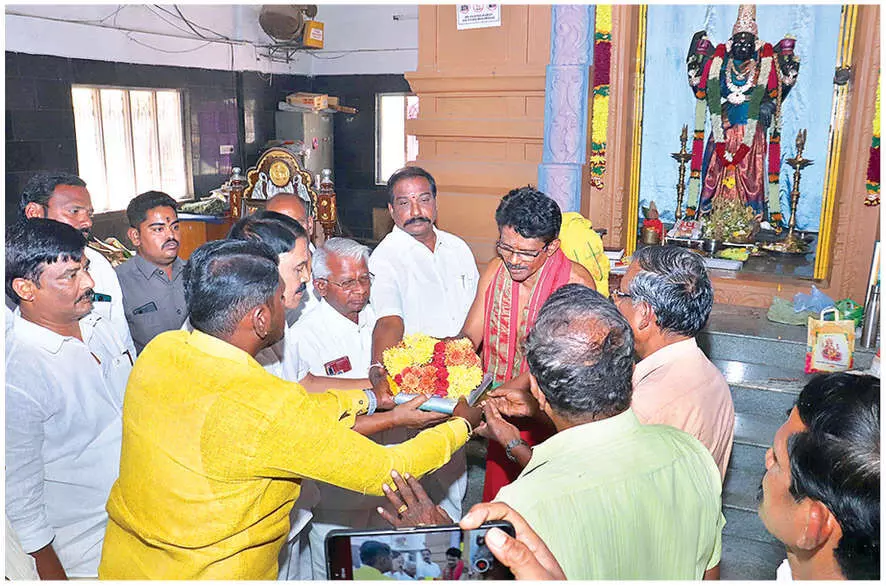 He was accorded a warm welcome by members of the Arya Vaisya community at each temple. After performing special rituals and receiving teertha prasadam, he said that following the formation of the coalition government, Atmarpana Day of Goddess Vasavi Parameshwari revered as the deity of the Arya Vaisya community has been officially recognized and is being celebrated as a state festival across Andhra Pradesh.