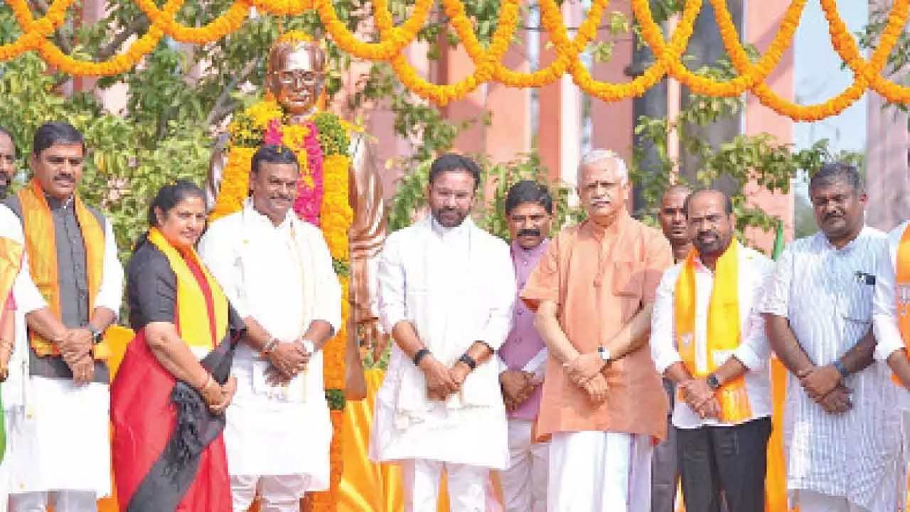Union minister of state Bhupathiraju Srinivasa Varma, BJP national general secretary (Organisation) B L Santhosh, state health minister Y Satya Kumar Yadav, MPs Daggubati Purandeswari, C M Ramesh and Paka Venkata Satyanarayana, MLC Somu Veerraju and MLAs Penmatsa Vishnu Kumar Raju, Y Sujana Chowdary, Ch Adinarayana Reddy and Dr P V Parthasaradhi participated in the programme.