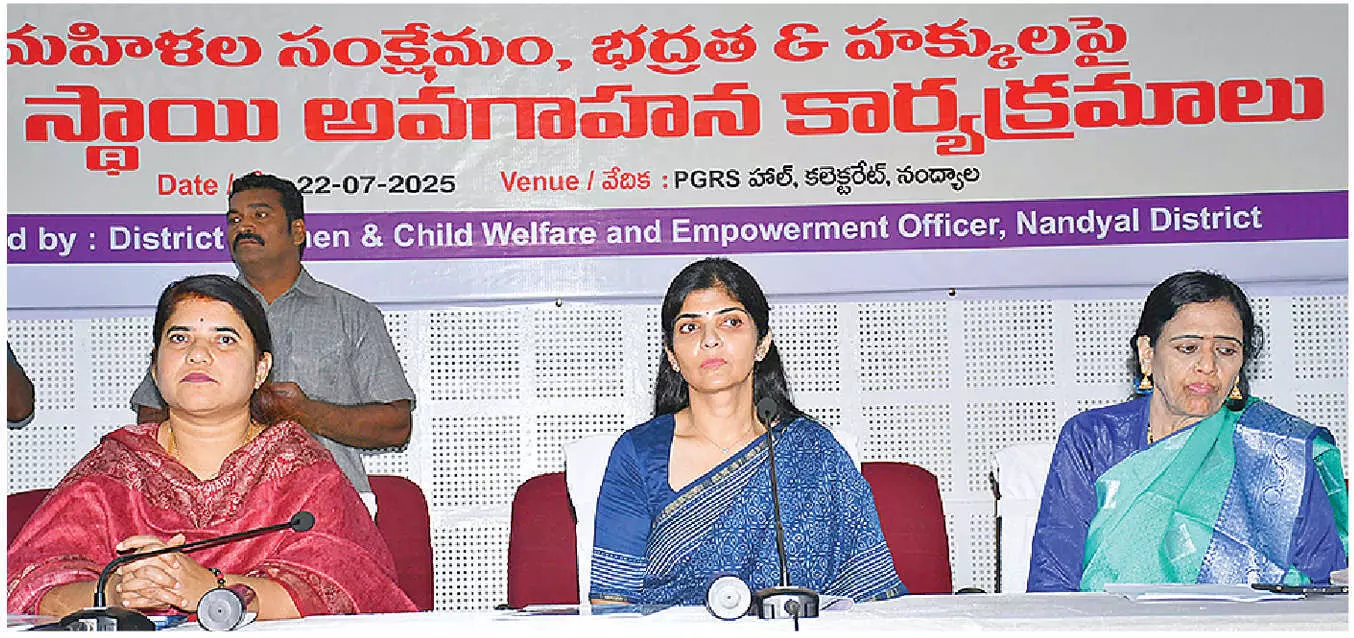 District collector Rajakumari Ganiya outlined the district administration’s efforts to bolster support systems for women and children since Nandyal’s formation as a new district.