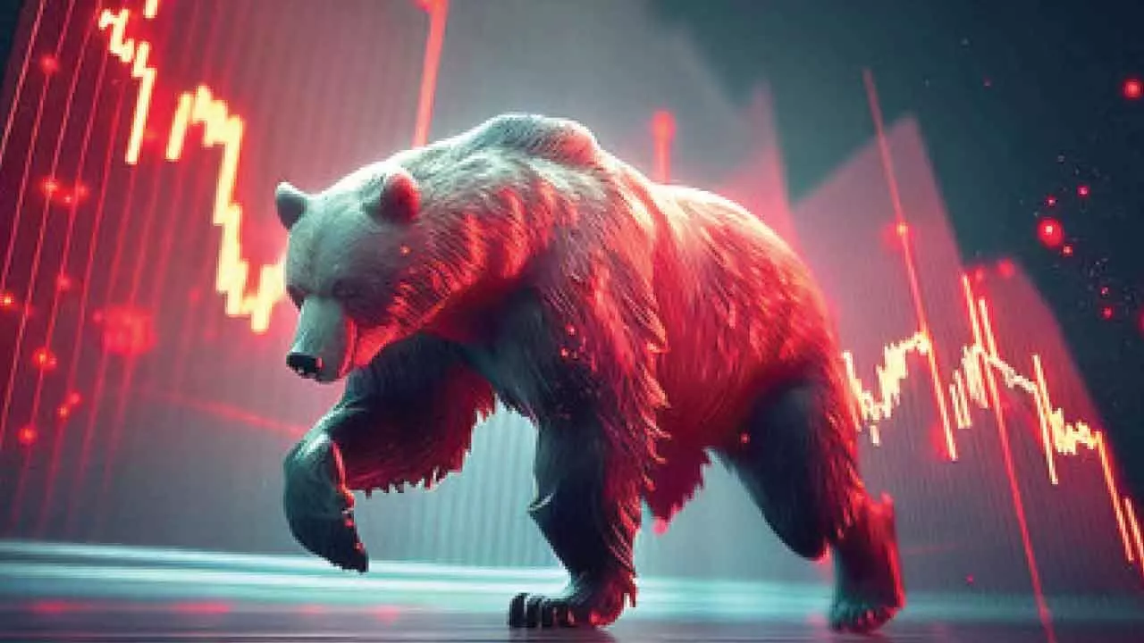 Mumbai: Stock market benchmarks Sensex and Nifty ended lower on Monday, tracking deep losses in heavyweights Reliance Industries, Eternal, and ICICI Bank amid rising geopolitical tensions and renewed global tariff concerns. Besides, subdued quarterly results, ongoing weakness in the rupee and unabated flight of foreign capital from Indian equities also made investors jittery, traders said.