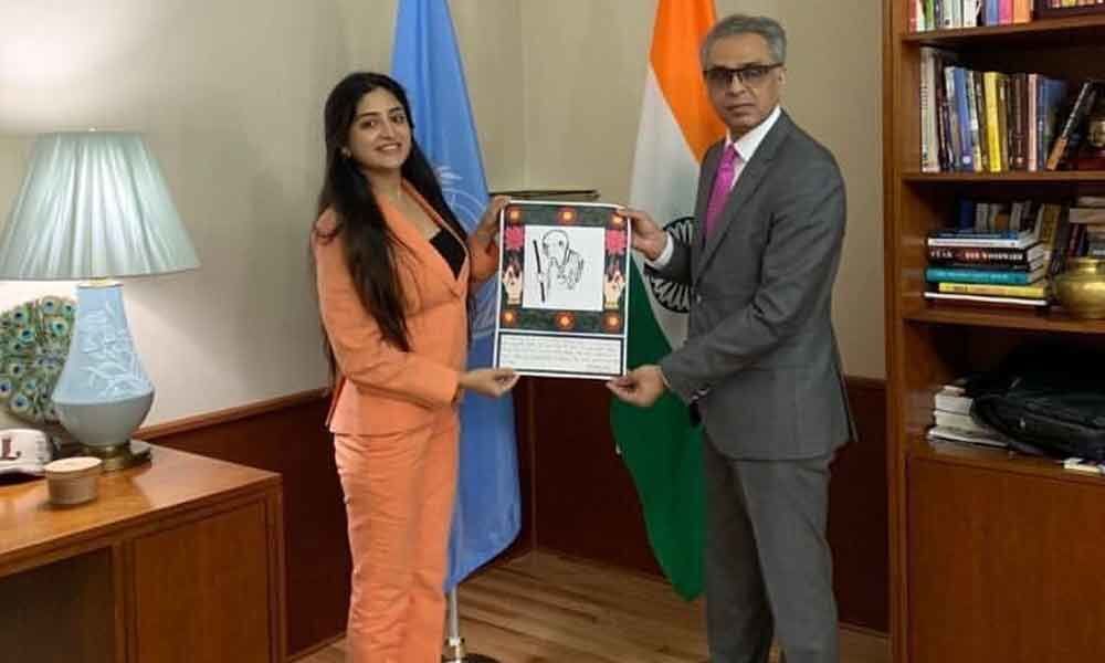 Poonam gifted a token of peace portrait of Gandhiji to the most-respected Ambassador Syed Akbaruddin of India's Permanent Representative at the UNO.