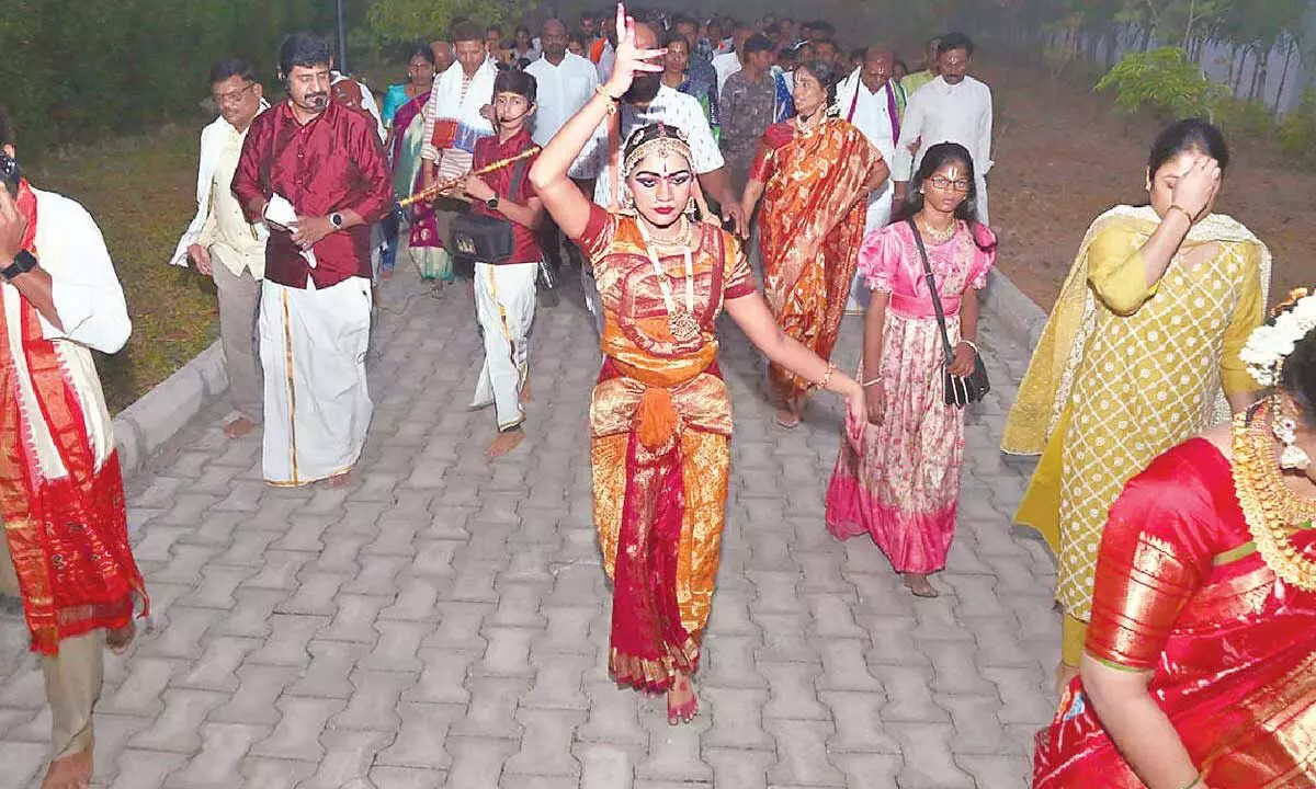 In a unique blend of devotion, culture, and classical art, 12-year-old Hyderabad-based Kuchipudi dancer P. Sri Vaishno Devi delivered a remarkable performance during the sacred Giri Pradakshana at the Sri Lakshmi Narasimha Swamy Devasthanam on the auspicious occasion of Swati Nakshatram.