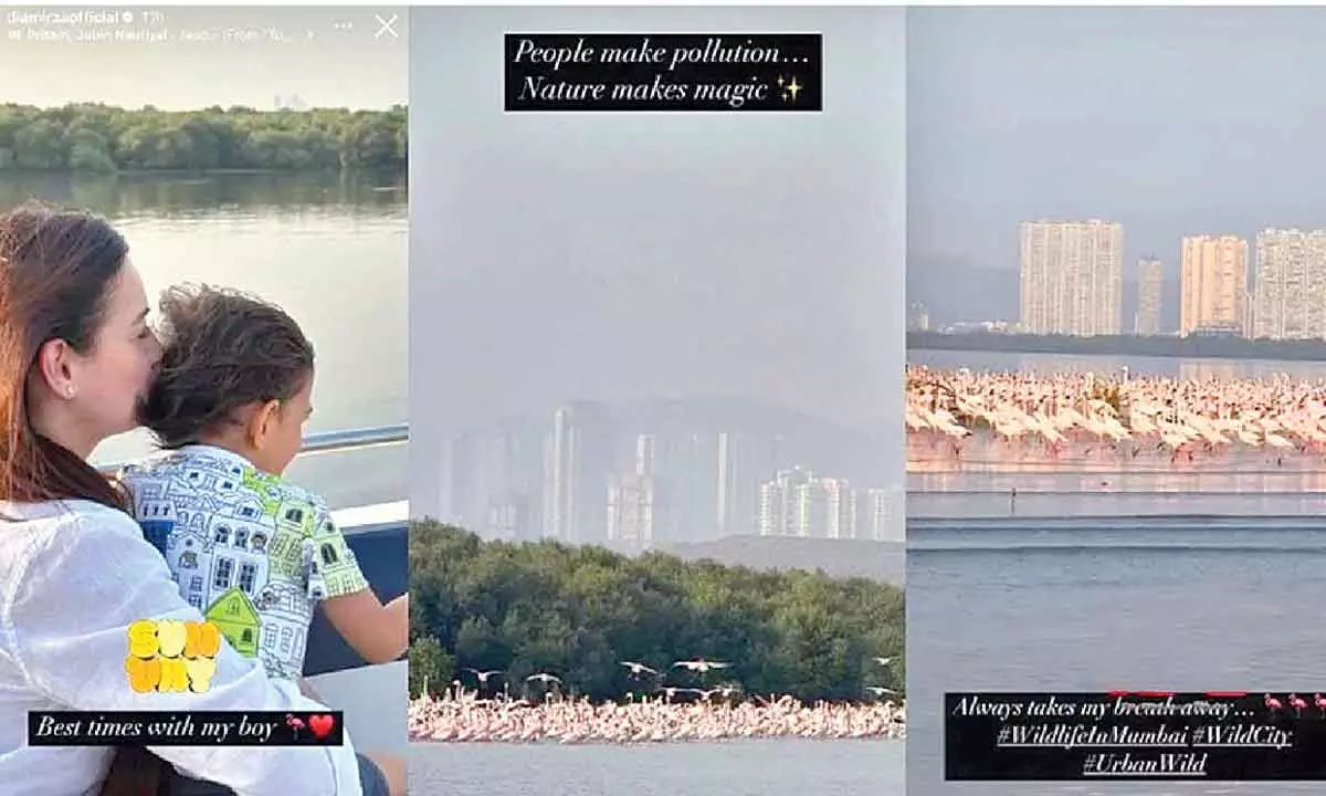 Dia took to her Instagram stories, where she shared a picture featuring a flamboyance of flamingos flocking in Airoli, Mumbai.