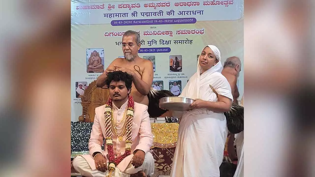 Hombuja (Shivamogga district): In a solemn and spiritually profound ceremony, Brahmachari Suraj embraced full monastic life in the Digambara Jain tradition, taking Muni Deeksha to become Munisri 108 Sayammsagara. The sacred initiation was performed by Munisri 108 Kunthusagara Maharaj Ghanadharacharya, with the participation of eminent Jain monks and scholars.