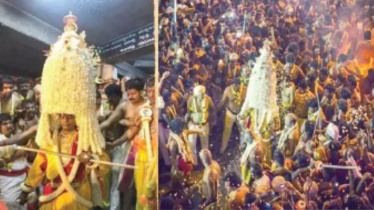 The festivities, which commenced at the Dharmaraya Swamy Temple on March 24, will culminate in the grand Karaga Shaktyotsava procession on Wednesday night. During the procession, a priest dressed in female attire traverses through the city’s streets visiting local temples, while expertly balancing a flower-decked pyramid (Karaga) on his head, representing Goddess Draupadi.