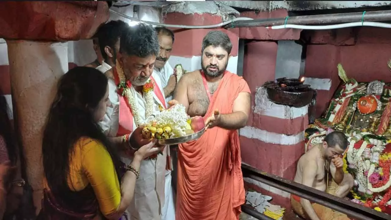 Accompanied by his wife and family members, the Deputy Chief Minister offered special prayers at the temple. “Every year, I come here to seek the blessings of the Goddess. This time too, I have come with my family to pray for peace and prosperity for all,” Shivakumar said.