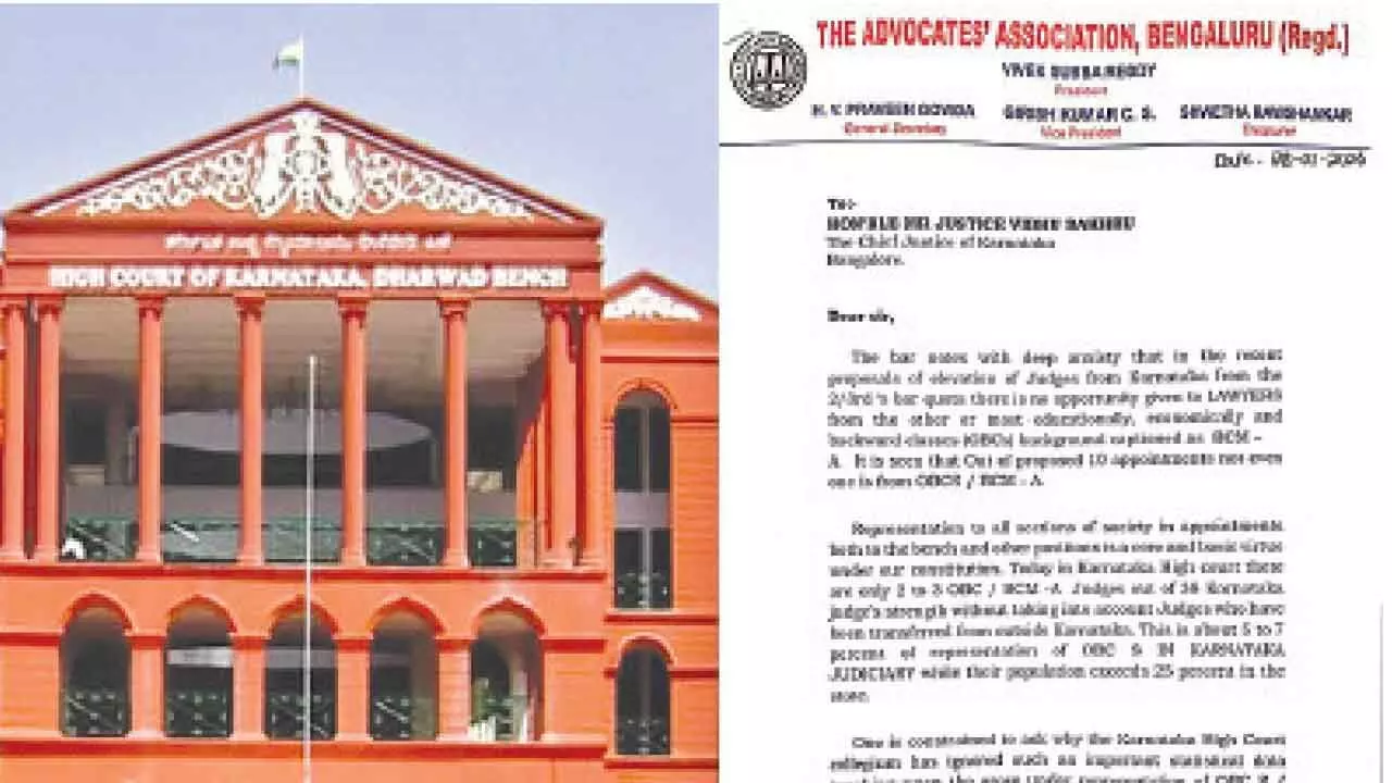 The Bengaluru Advocates Association (AAB) has expressed strong dissatisfaction over the alleged lack of representation for Other Backward Classes (OBC/BCM-A) in recent judicial appointments to the Karnataka High Court and has written a detailed letter to Chief Justice Vibhu Bakhru seeking corrective measures.