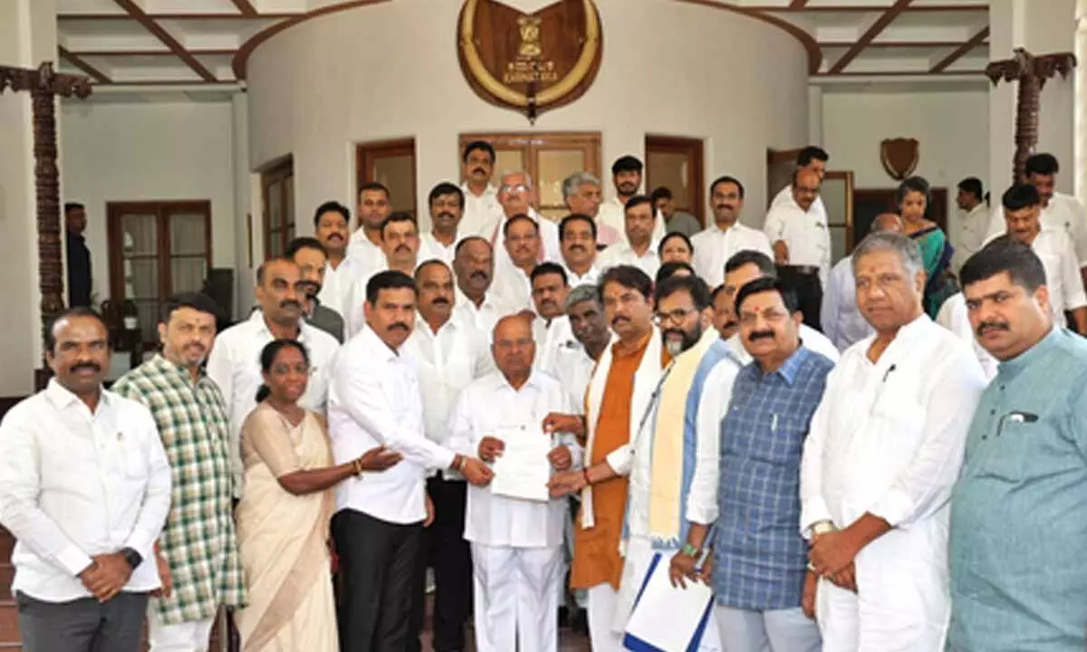 The delegation included the Leaders of the Opposition, R. Ashoka, Chalavadi Narayanaswamy, BJP State Cell Co-Ordinator S. Dattatri and others.