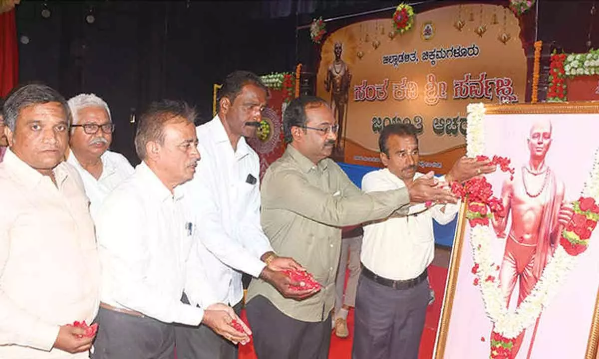 Chikkamagaluru: The tripadis (three liners) of 16th century saint-poet and philosopher Sarvajna are not merely literary works but possess the power to correct social distortions, said A.N. Mahesh, Chairman of the State Environment Impact Assessment Authority, Government of India. He was speaking after inaugurating the Sarvajna Jayanti celebrations organised at Kuvempu Kalmandir in the city on Friday. Mahesh said Sarvajna had waged a social battle through his writings against class conflicts, caste hierarchies and social discrimination prevalent during his time. In today’s fast-paced world, where people may not find time to read long poems, Sarvajna’s crisp three-line verses remain relevant even in the era of WhatsApp and information technology, he said. Though the name ‘Sarvajna’ means ‘one who knows everything’, the saint-poet exemplified humility by stating that he had learnt a word each from everyone, Mahesh added.