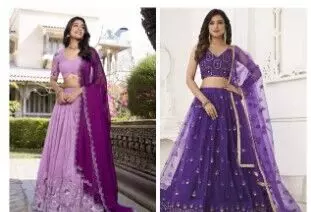 If you enjoy Indian craftsmanship, you can pick purple lehengas with zari, Banarasi work or delicate thread embroidery.
