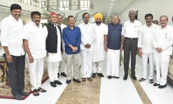 Chief Ministers and top leaders under the leadership of Chief Minister Sri K Chandrashekhar Rao reached the premises of Sri Yadagiri Lakshmi Narasimha Swamy Temple. Delhi Chief Minister Arvind Kejriwal, Punjab Chief Minister Bhagwant Singh Man, former UP Chief Minister Akhilesh Yadav, Ministers Vemula Prashanth Reddy, Mahmood Ali, Talasani Srinivas Yadav, MP Joginapally Santosh Kumar and MLC Kavitha are present.