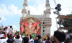 Grand procession of various Ganesh idol begins at the old city with pomp and gait.