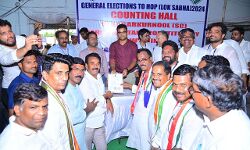 Porika Balram Naik, Congress Party candidate of Mahabubabad Parliament, receiving the certificate of victory from the hands of the District కలెక్టర్ on Tuesday