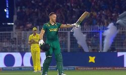 His greatest innings in any format and it has come in a World Cup semi-final. Rabada goes and hugs him warmly. Miller takes his time and off comes the helmet to soak in the standing ovation from everyone including the WAGs from his team. As soon as he hit this, he celebrates by waving the bat wildly and swiping the air.