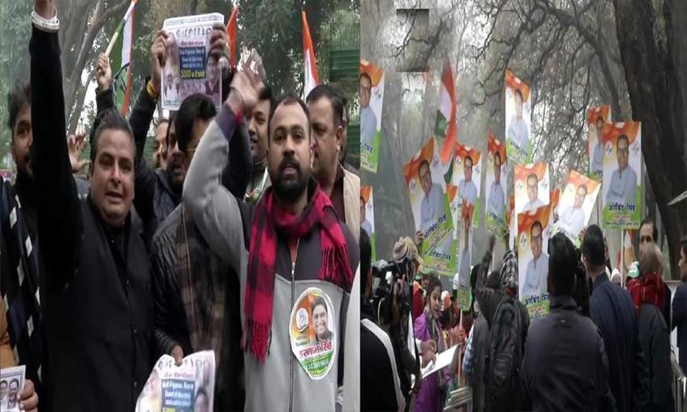 New Delhi: A group of Congress workers protested against their own party president Sonia Gandhi outside her residence over ticket distribution for forthcoming Delhi assembly elections.