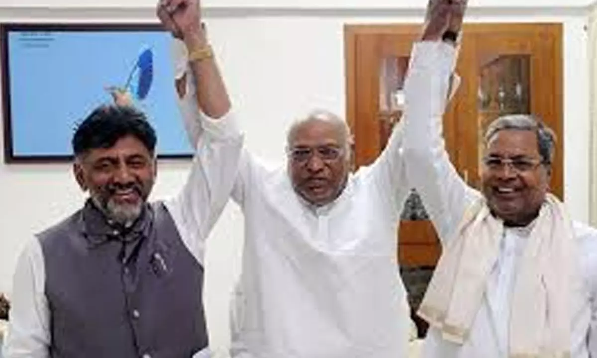 “I complement Siddaramaiah and Shivakumar. Together you (both) should go ahead and focus more on the development of the state. If we overlook development, definitely people won’t like us.” Observing that the work will be successful if both Shivakumar and Siddaramaiah work together, AICC chief Mallikarjun Kharge making hand gestures, said, “If they are apart, it will be difficult. We want them to move forward in the same direction together.” “... if they go together in the same direction, it will be correct. If they go in different directions, it will be difficult,” he reiterated, looking at Shivakumar, who was seated on the dias.