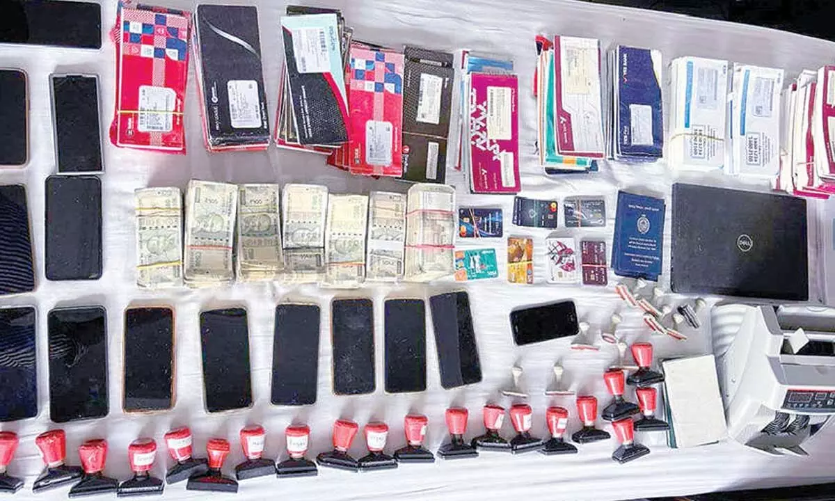 Police seized 204 mobile phones, 141 SIM Cards, 152 bank passbooks, 234 debit/credit cards, 26 laptops, 56 corporate/firm stamps, and a cash of Rs 36 lakh.