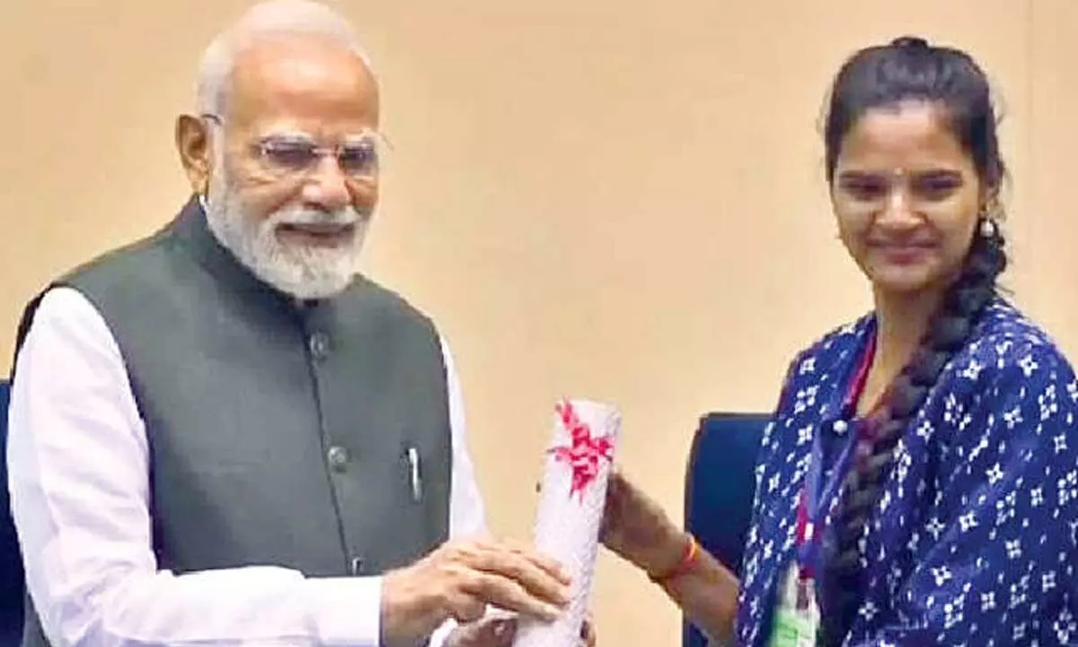 Khammam: TalluriPallavi, a young talent from Arempula village in Khammam Rural mandal, was honoured by Prime Minister Narendra Modi at a national event in New Delhi on Thursday.