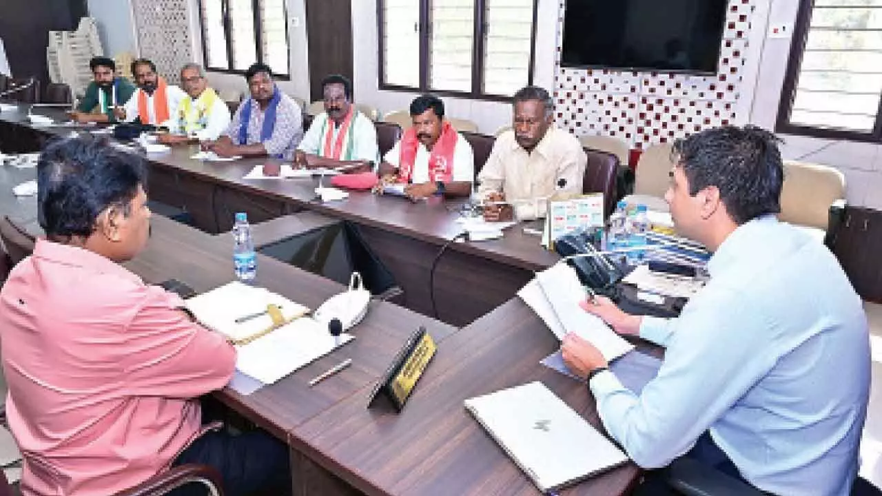 District Revenue Officer K Mohan Kumar, Surendra Kumar (TDP), Paradesi (INC), Atluri Srinivasulu (BJP), N Uday Kumar Reddy (YSRCP), Kalluri Bala Subramanyam (Aam Aadmi), and other officials attended the meeting.