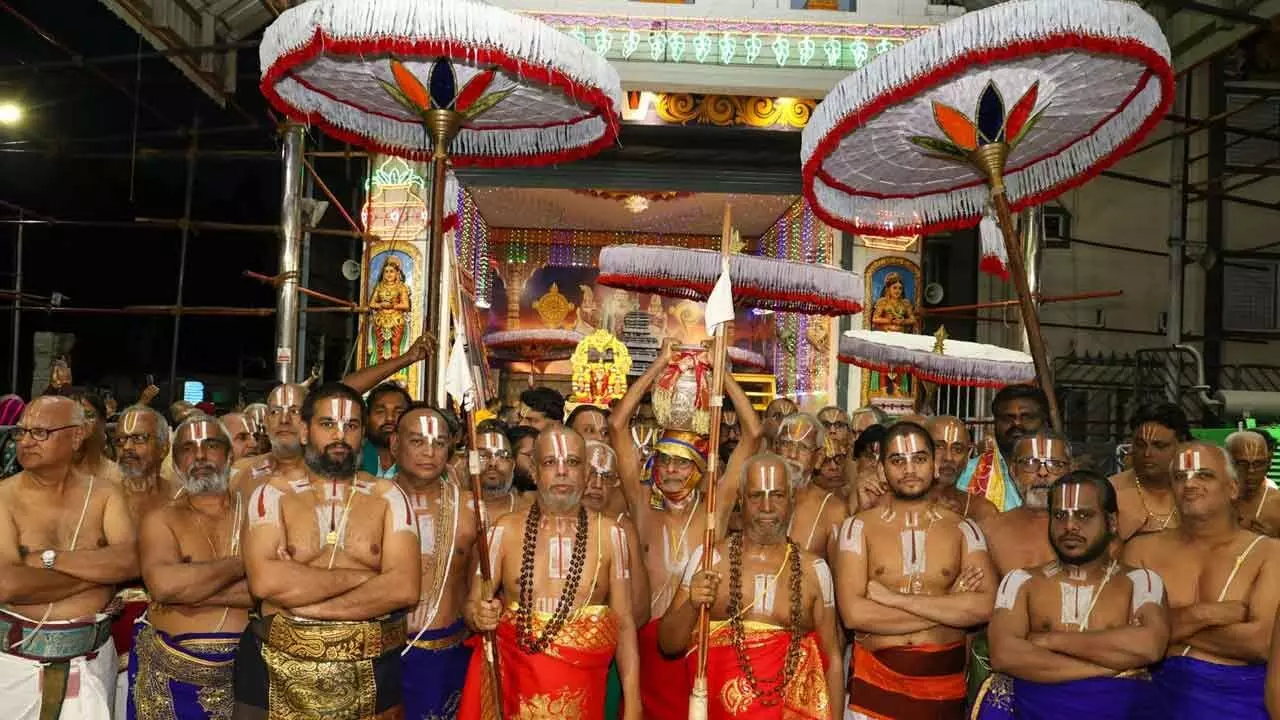 Tirumala: Adhyayanotsavams in Tirumala temple concluded with Tanniramudu on Thursday. On Friday evening, Sri Malayappa along with His Consorts will visit Tirumala Nambi temple after Sahasra Deepalankara Seva.